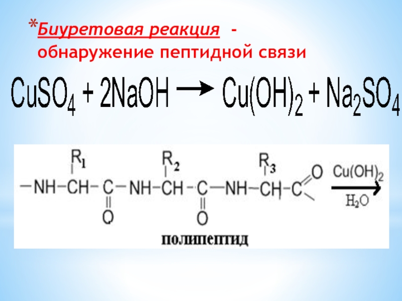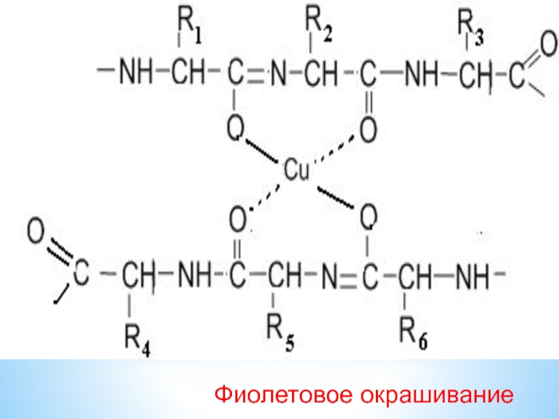 Слайд 64Биуретовая реакция - обнаружение пептидной связи