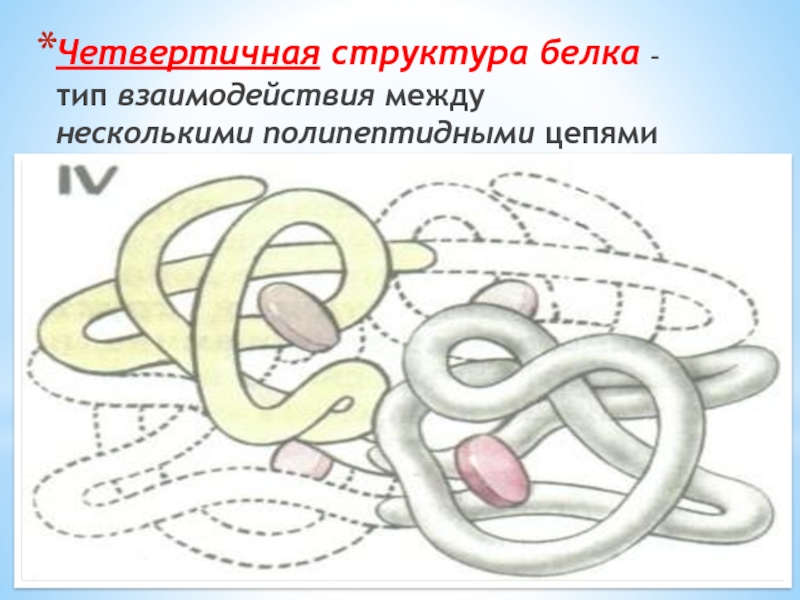 Слайд 57Четвертичная структура белка – тип взаимодействия между несколькими полипептидными цепями