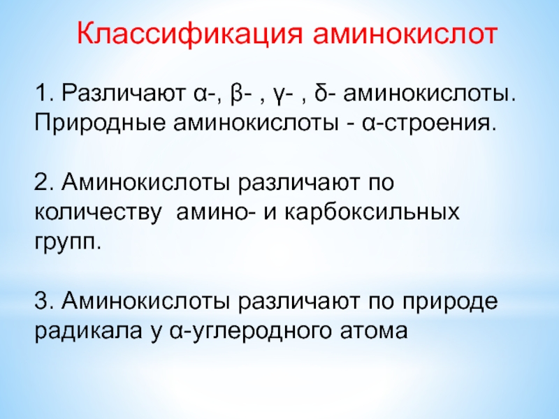 Слайд 31. Различают α-, β- , γ- , δ- аминокислоты.