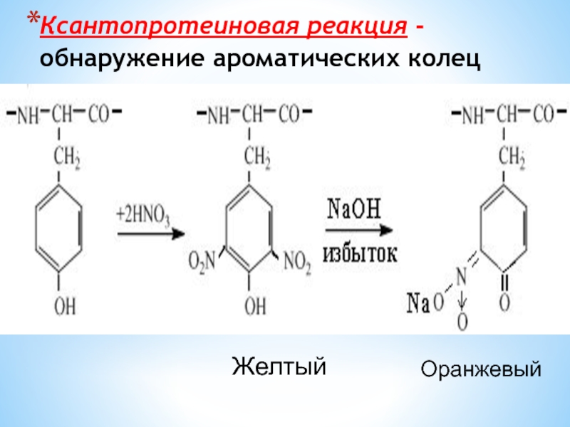 Слайд 66Ксантопротеиновая реакция - обнаружение ароматических колец