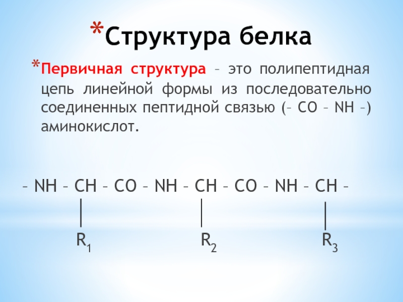 последовательно соединенных пептидной связью (– CO – NH –) аминокислот.