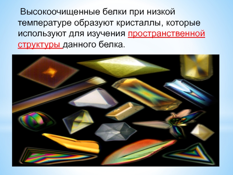 Слайд 69 Высокоочищенные белки при низкой температуре образуют кристаллы, которые используют для