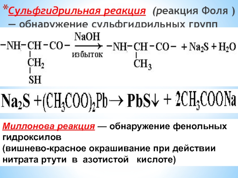 Слайд 67Сульфгидрильная реакция (реакция Фоля ) — обнаружение сульфгидрильных групп