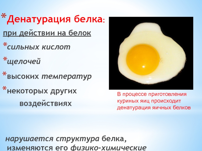 В процессе приготовления куриных яиц происходит денатурация яичных белков
