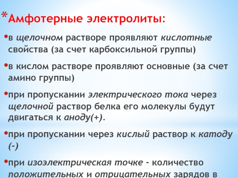 электрического тока через щелочной раствор белка его молекулы будут двигаться к аноду(+).
