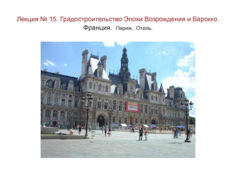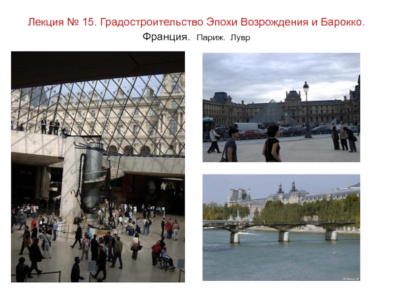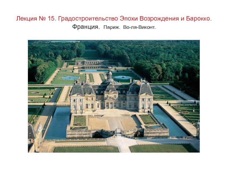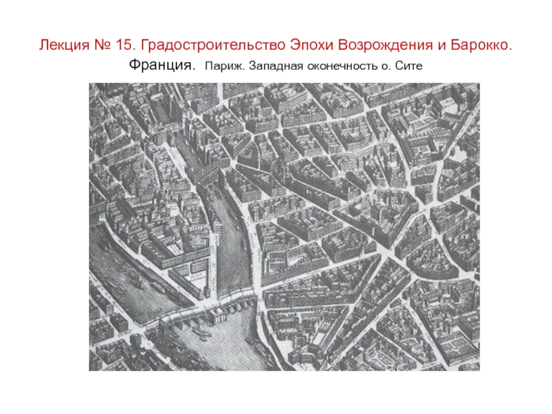 идеальных городов-крепостей на окраинах страны. Проникновение во Францию градостроительных идей эпохи Возрождения. Строительство городов Витри-ле-Франсуа и Анришмон, трактат Жака Перре. Градостроительные работы в Париже. Формирование протяженных городских ансамблей, этапы развития Лувра и Тюильри. Образование замкнутых городских пространств: регулярные Королевские площади (Вогезов и Дофина). Строительство улиц и мостов нового типа. Пон-Неф. План Парижа Мериана.Зарождение и развитие осевого планировочного приема в планировке загородных парков. Город Ришелье. Абсолютизм Людовика XIV и строительство дворцово-паркового ансамбля в Версале. Творчество А. Ленотра. Перенесение принципов планировки Версальского ансамбля в Париж. Работы Ленотра по разбивке бульваров и Елисейских полей. Градостроительные работы Ж. А. Мансара. Бандомская площадь и площадь Побед. Ансамбль Инвалидо. Застройка западного района Парижа. Строительство городов-крепостей С. Вобаном. Сложение теоретической концепции французского классицизма в области градостроительства под влиянием идей Декарта и строительного опыта Вобана. Основание французской Академии архитектуры- законодательницы нового стиля. Рассуждения о пропорциях Ф. Блонделя и К. Перро.