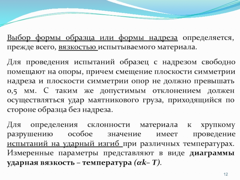 Слайд 13Испытания на ударную вязкость надрезанных образцов с регистрацией диаграммы.