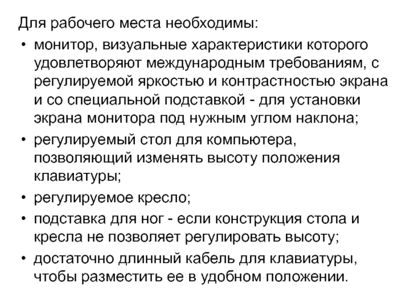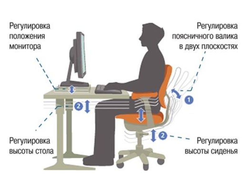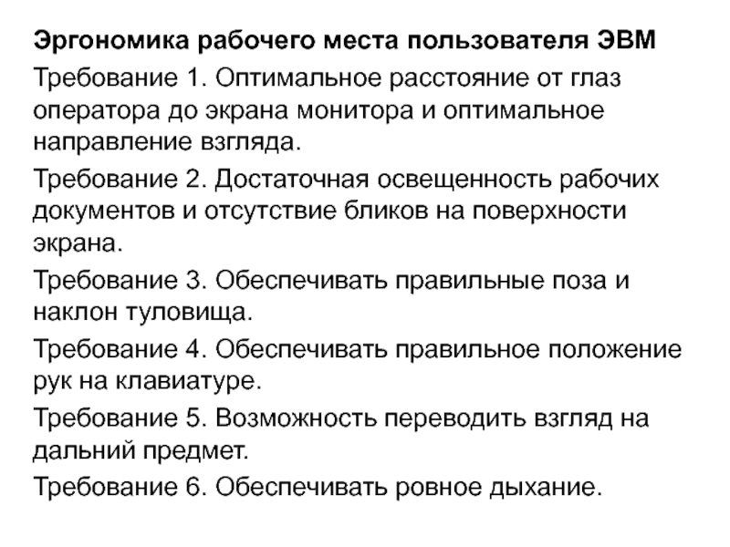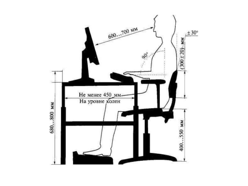 Слайд 11Эргономика рабочего места пользователя ЭВМ