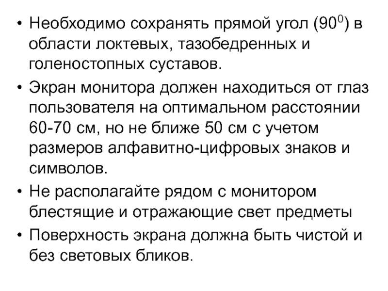 Экран монитора должен находиться от глаз пользователя на оптимальном
