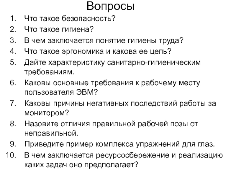 БЕЗОПАСНОСТЬ, ГИГИЕНА, ЭРГОНОМИКА, РЕСУРСОСБЕРЕЖЕНИЕ.