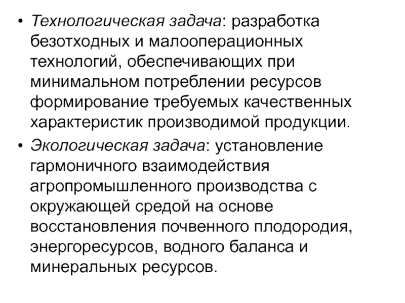 Слайд 26Технологическая задача: разработка безотходных и малооперационных технологий, обеспечивающих при минимальном потреблении