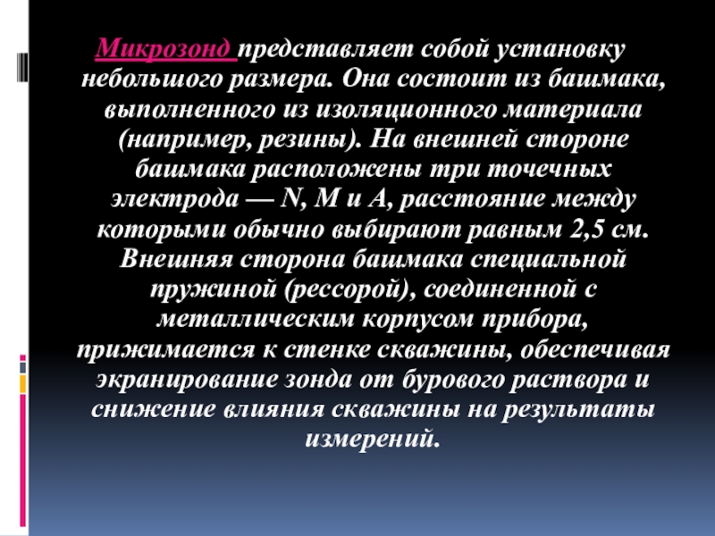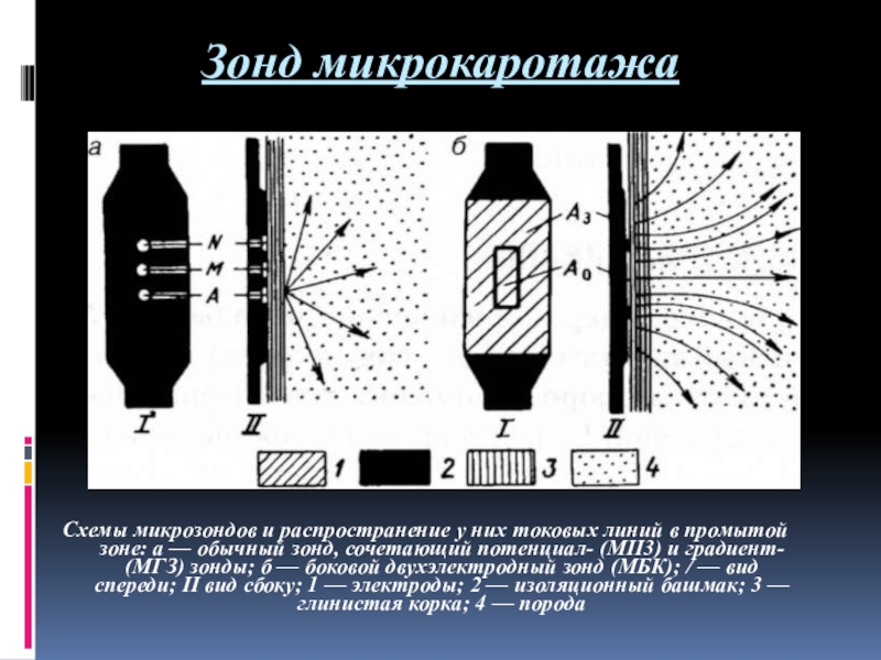 Длина зонда соотносится с диаметром скважины - измеряется сопротивление промытой зоны, зоны проникновения, горных пород.