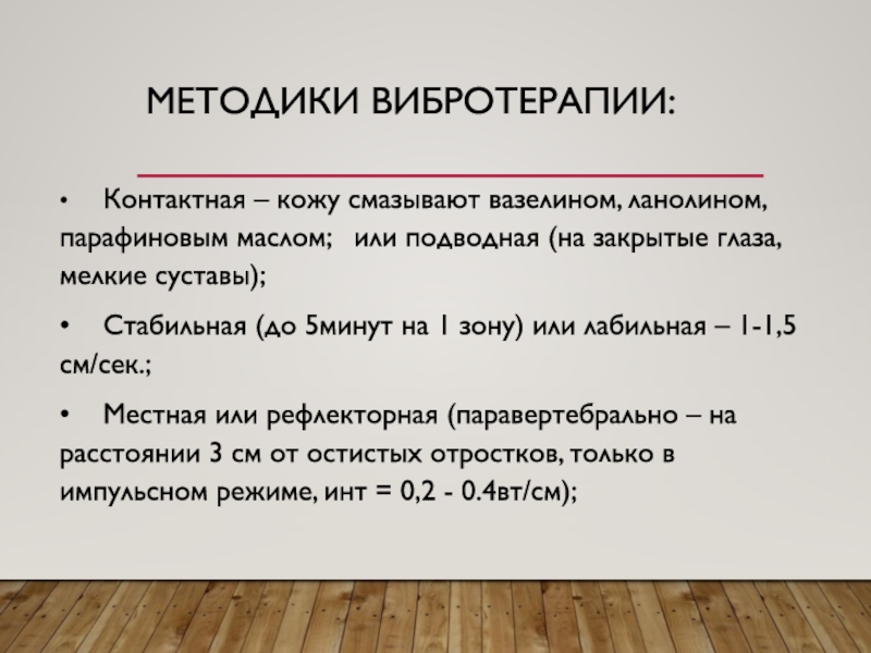 • Контактная – кожу смазывают вазелином, ланолином, парафиновым маслом;