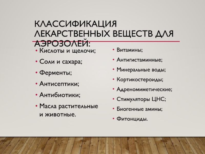 Слайд 25Классификация лекарственных веществ для аэрозолей:
