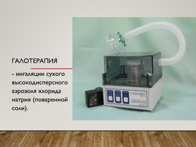 - ингаляции сухого высокодисперсного аэрозоля хлорида натрия (поваренной соли).