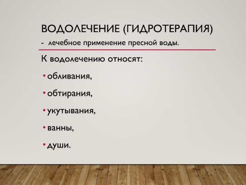 лечебные воздействия на больного, погруженного в воду, определенного состава и