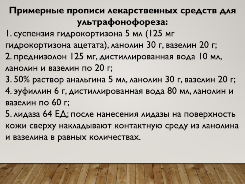 Слайд 19Примерные прописи лекарственных средств для ультрафонофореза: