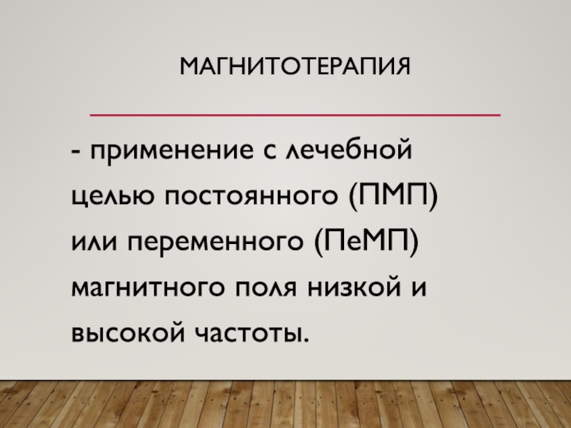 - применение с лечебной целью постоянного (ПМП) или переменного (ПеМП)