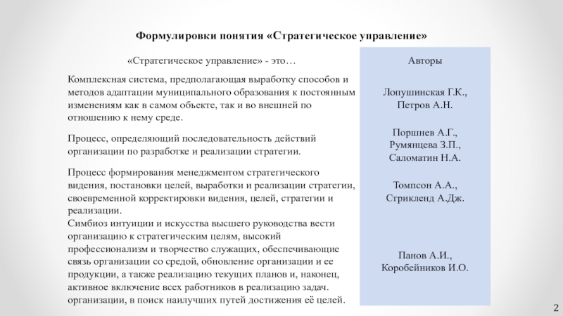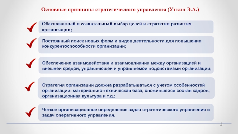 Обоснованный и сознательный выбор целей и стратегии развития организации;