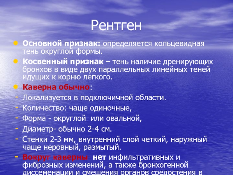 характеризуется наличием тонкостенной каверны, без перифокального воспаления, при отсутствии
