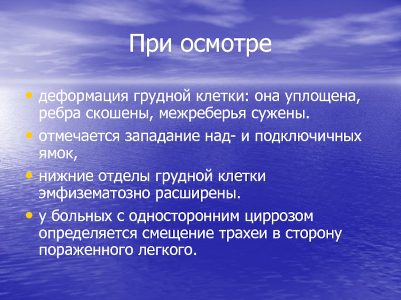 у больных с односторонним циррозом определяется смещение трахеи в сторону пораженного легкого.