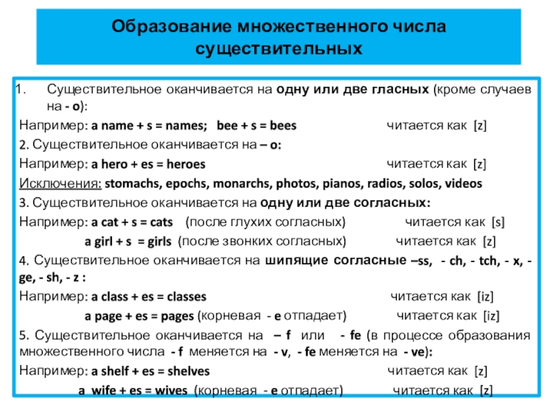 Рассмотрим способы образования множественного числа существительных.