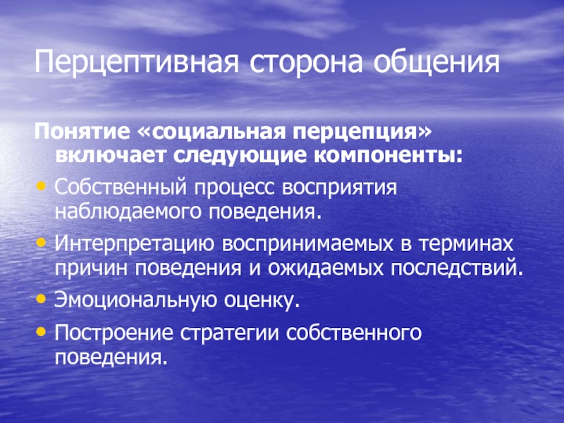 Слайд 9Перцептивная сторона общения