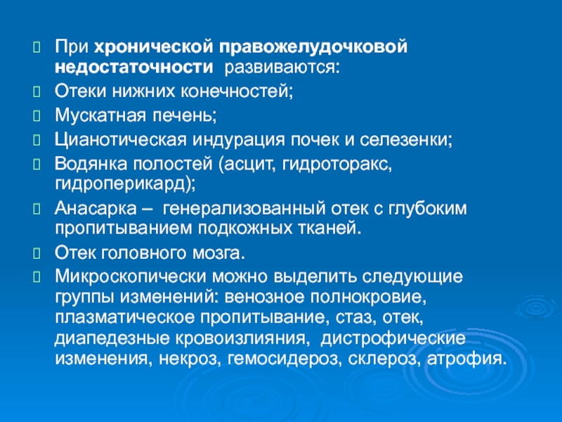 Слайд 30При хронической правожелудочковой недостаточности развиваются: