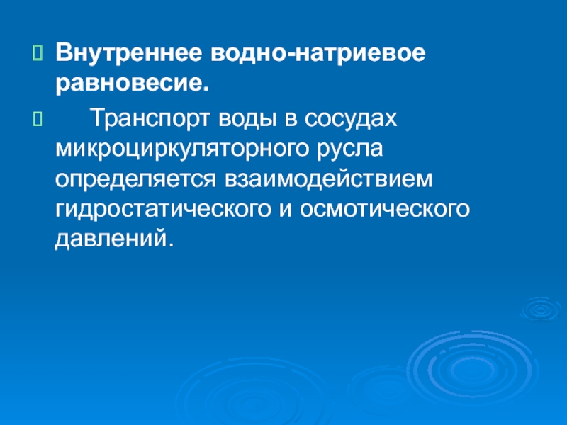 Слайд 9Внутреннее водно-натриевое равновесие.