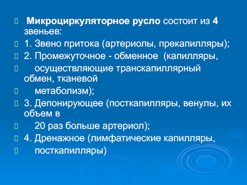 Слайд 10 Микроциркуляторное русло состоит из 4 звеньев: