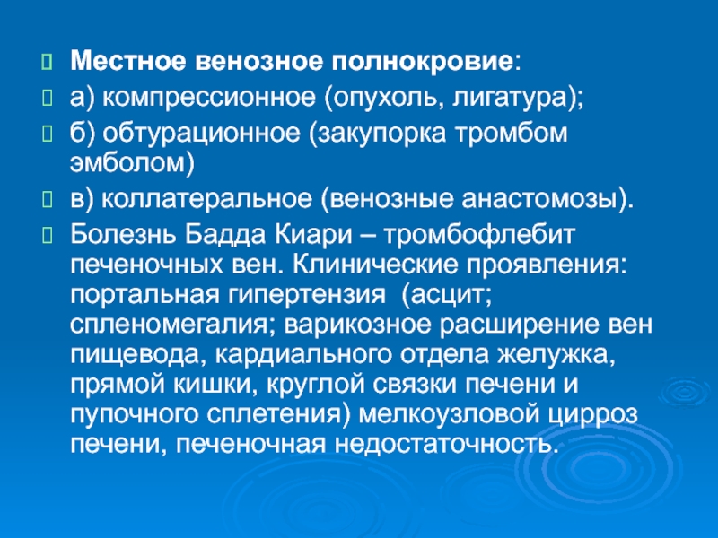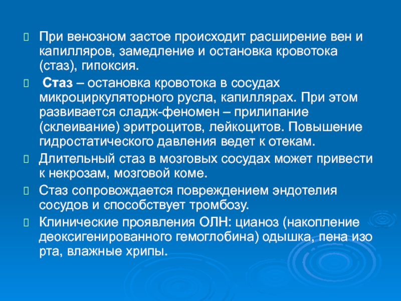 Слайд 24При венозном застое происходит расширение вен и капилляров, замедление и