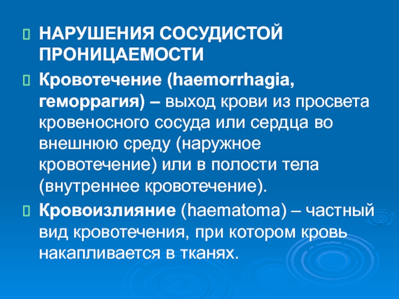 Кровоизлияние (haematoma) – частный вид кровотечения, при котором кровь накапливается в тканях.