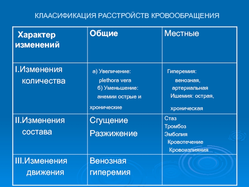 Слайд 15КЛААСИФИКАЦИЯ РАССТРОЙСТВ КРОВООБРАЩЕНИЯ