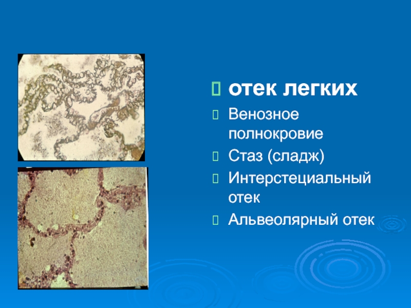 Изменения в легких при ОЛН: венозное полнокровие,плазматическое пропитывание, отек, стаз, диапедезные кровоизлияния