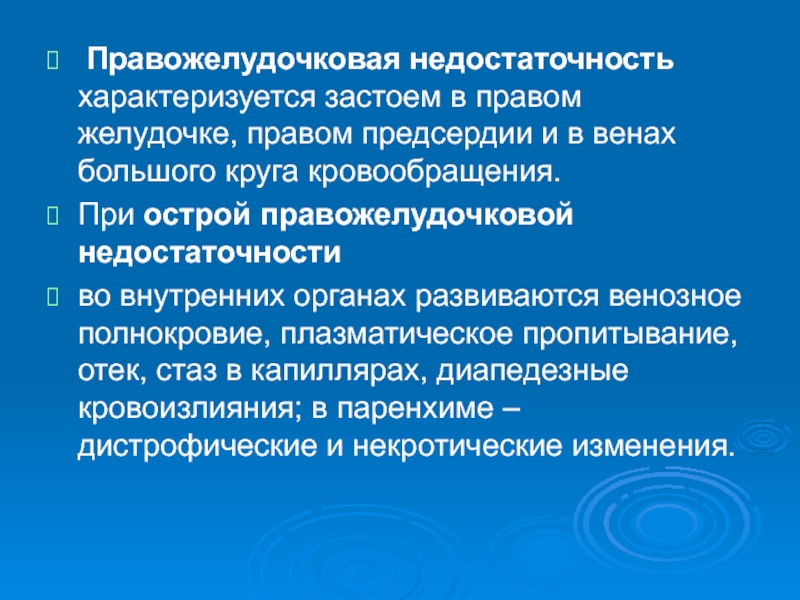 Слайд 28 Правожелудочковая недостаточность характеризуется застоем в правом желудочке, правом предсердии