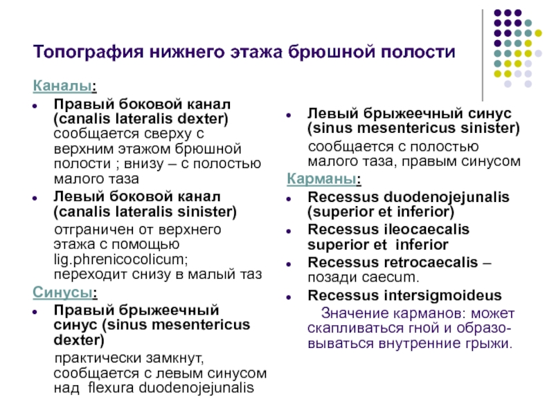 dexter) сообщается сверху с верхним этажом брюшной полости ; внизу – с полостью малого таза Левый боковой канал (canalis lateralis sinister)