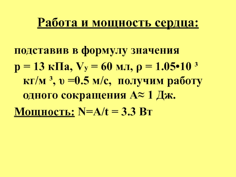 Слайд 25Работа и мощность сердца: