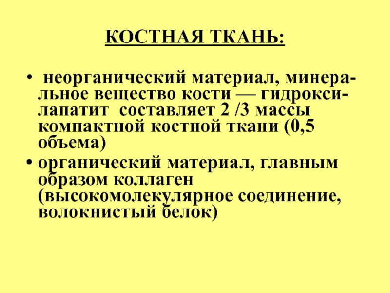 неорганический материал, минера-льное вещество кости — гидрокси-лапатит составляет