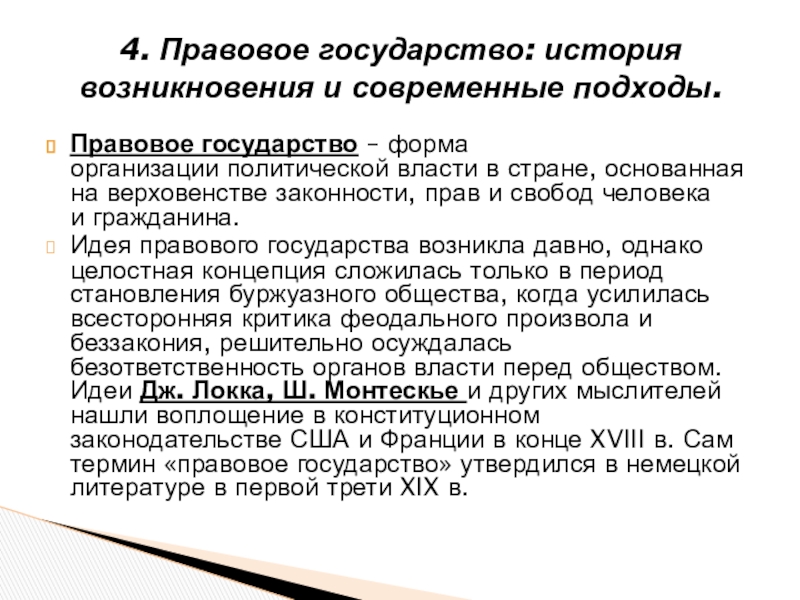 4. Правовое государство: история возникновения и современные подходы.