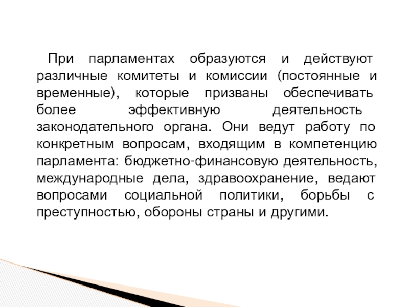 Слайд 14При парламентах образуются и действуют различные комитеты и комиссии (постоянные