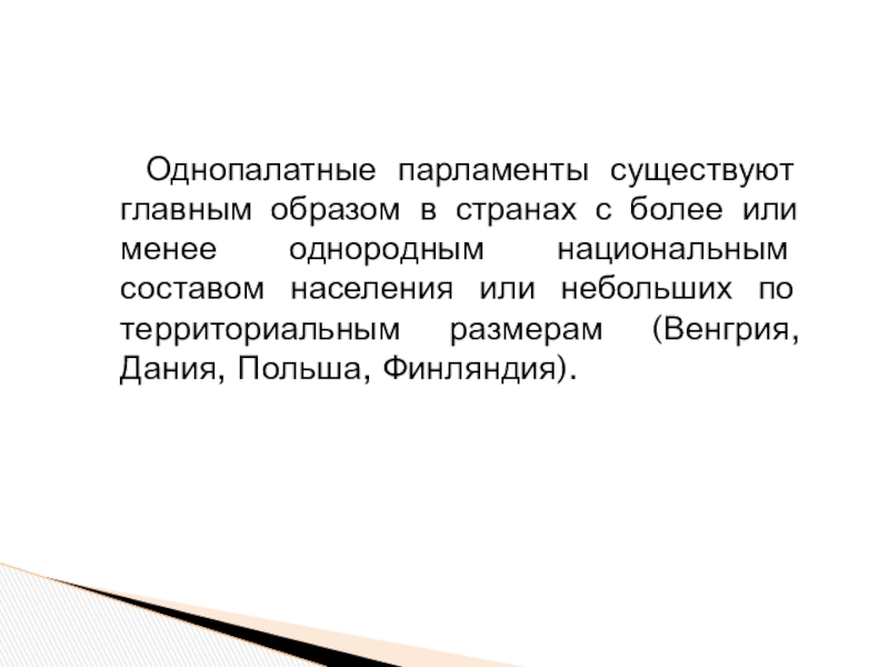 Слайд 13Однопалатные парламенты существуют главным образом в странах с более или