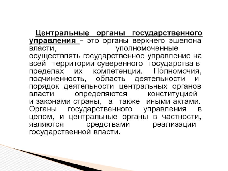 Слайд 18Центральные органы государственного управления – это органы верхнего эшелона власти,