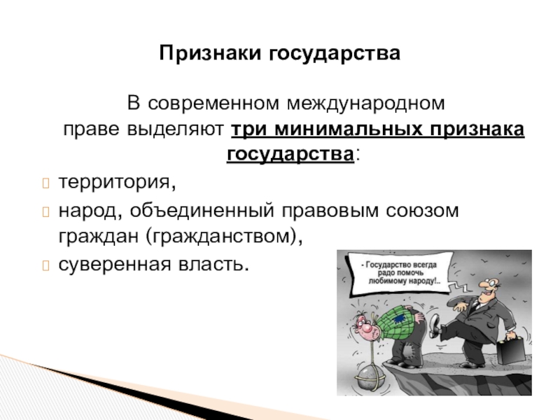В современном международном праве выделяют три минимальных признака государства: