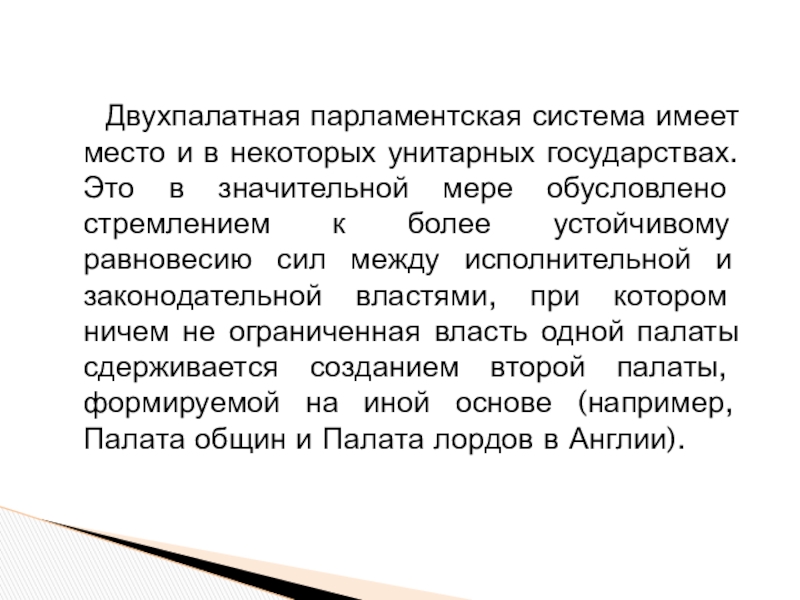 Слайд 12Двухпалатная парламентская система имеет место и в некоторых унитарных государствах.