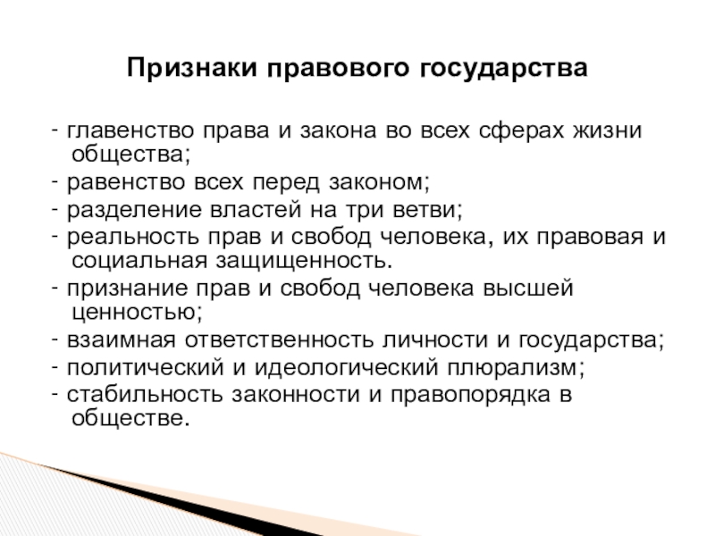 Признаки правового государства