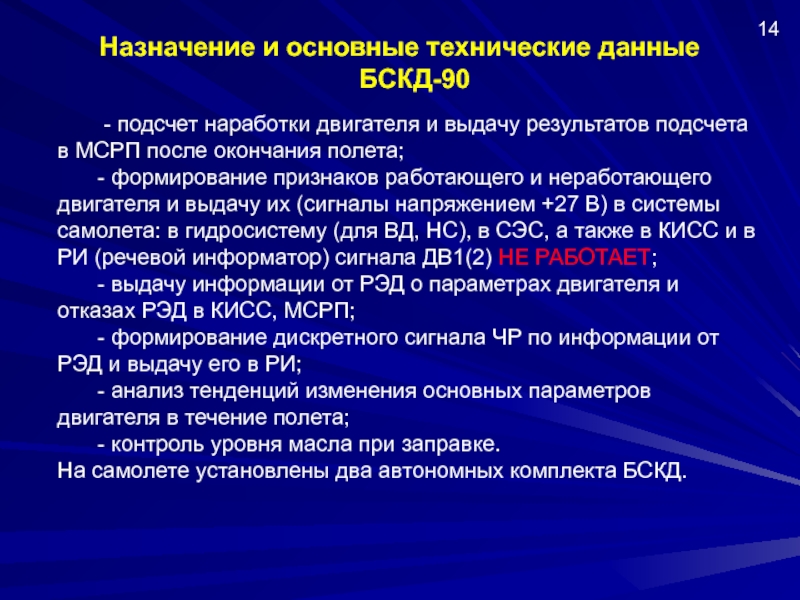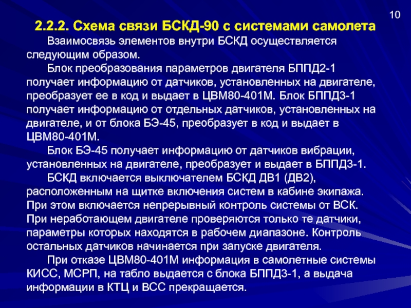 Слайд 2 2.2.1. Бортовая система контроля работы авиадвигателей БСКД-90: назначение, состав,