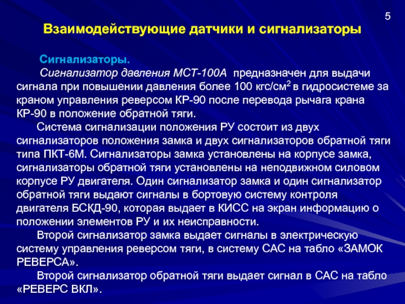 Второй сигнализатор замка выдает сигналы в электрическую систему управления реверсом тяги, в систему САС на табло «ЗАМОК РЕВЕРСА».