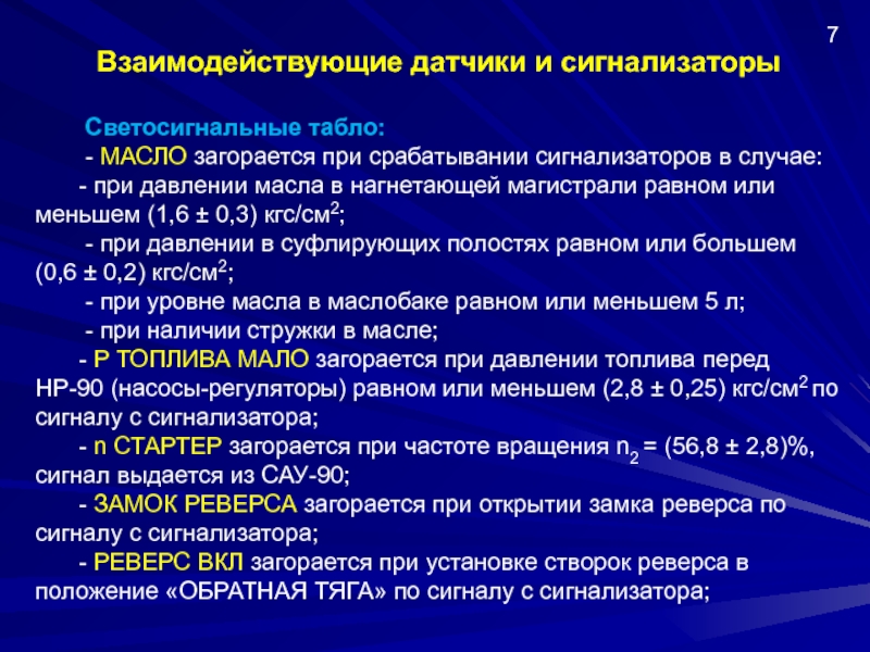 - Р ТОПЛИВА МАЛО загорается при давлении топлива перед НР-90 (насосы-регуляторы) равном или меньшем (2,8 ± 0,25) кгс/см2 по сигналу с сигнализатора;
