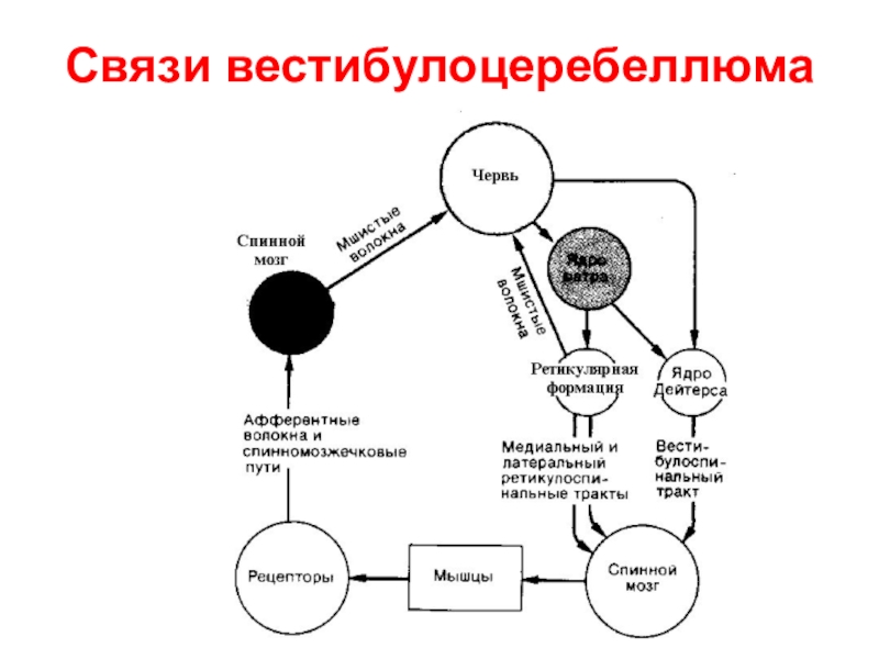прямое и непрямое влияние на ядро Дейтерса, а также на ретикулярную формацию продолговатого мозга и моста.