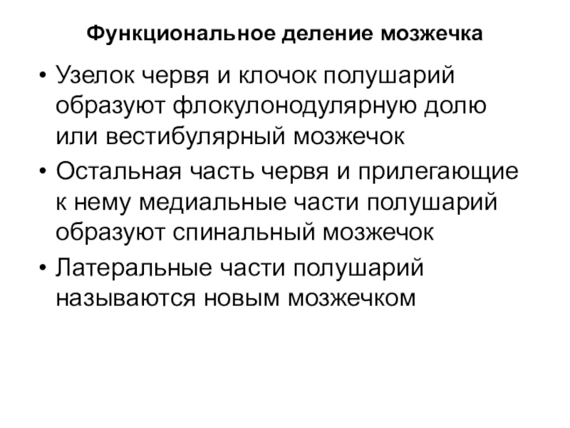часть - флокулонодулярная доля (древний мозжечок или архицеребеллум).
